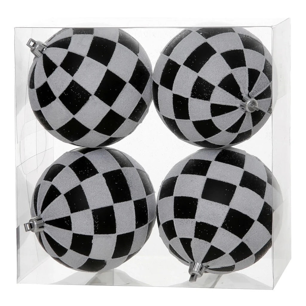 | Manufacturer Description: | 4.7″ Black-White Check Glitter Ball 4/B (N142177) |