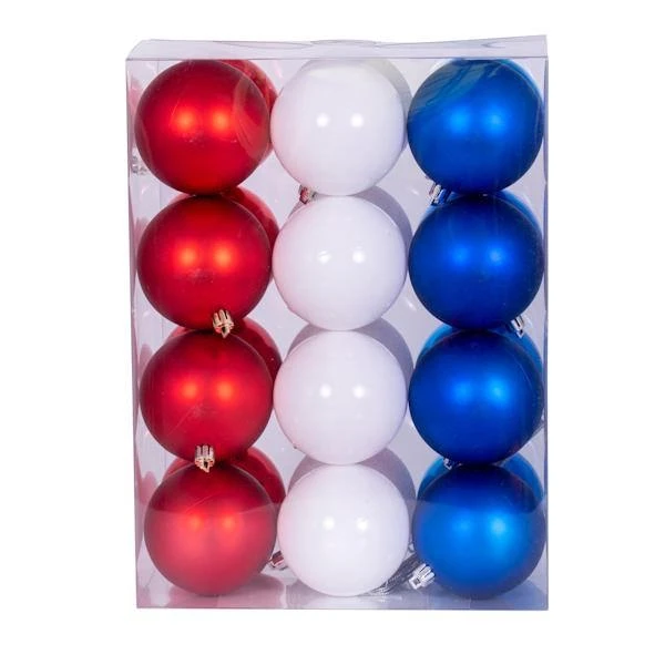 | Manufacturer Description: | 3″ Red White Blue Ornament Asst 24/box (N220568) | ||||
